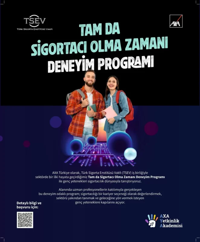 AXA Türkiye, bu programla yalnızca gençlere deneyim sunmakla kalmıyor; aynı zamanda sektörün sürdürülebilir gelişimine de katkı sağlıyor. Kuruluşların gençlere sadece istihdam değil, değer yaratma sorumluluğu taşıdığı anlayışıyla hareket eden Şirket, Türkiye Sigorta Enstitüsü Vakfı (TSEV) ile birlikte sektöre nitelikli yeni isimler kazandırmayı hedefliyor.