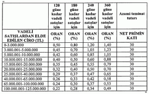 KOBİ’lere yönelik alacak sigortasında yeni bir düzenleme ile asgari teminat tutarı başta olmak üzere değişiklikler yapıldı. 25 Mart 2020 ÇARŞAMBA tarihli ve 31079 sayılı Resmi Gazete’de yayınlanan tebliğe göre alacak sigortasında vadeli satışlardan elde edilen ciro miktarına göre verilen asgari teminat miktarı tablosu güncellendi.